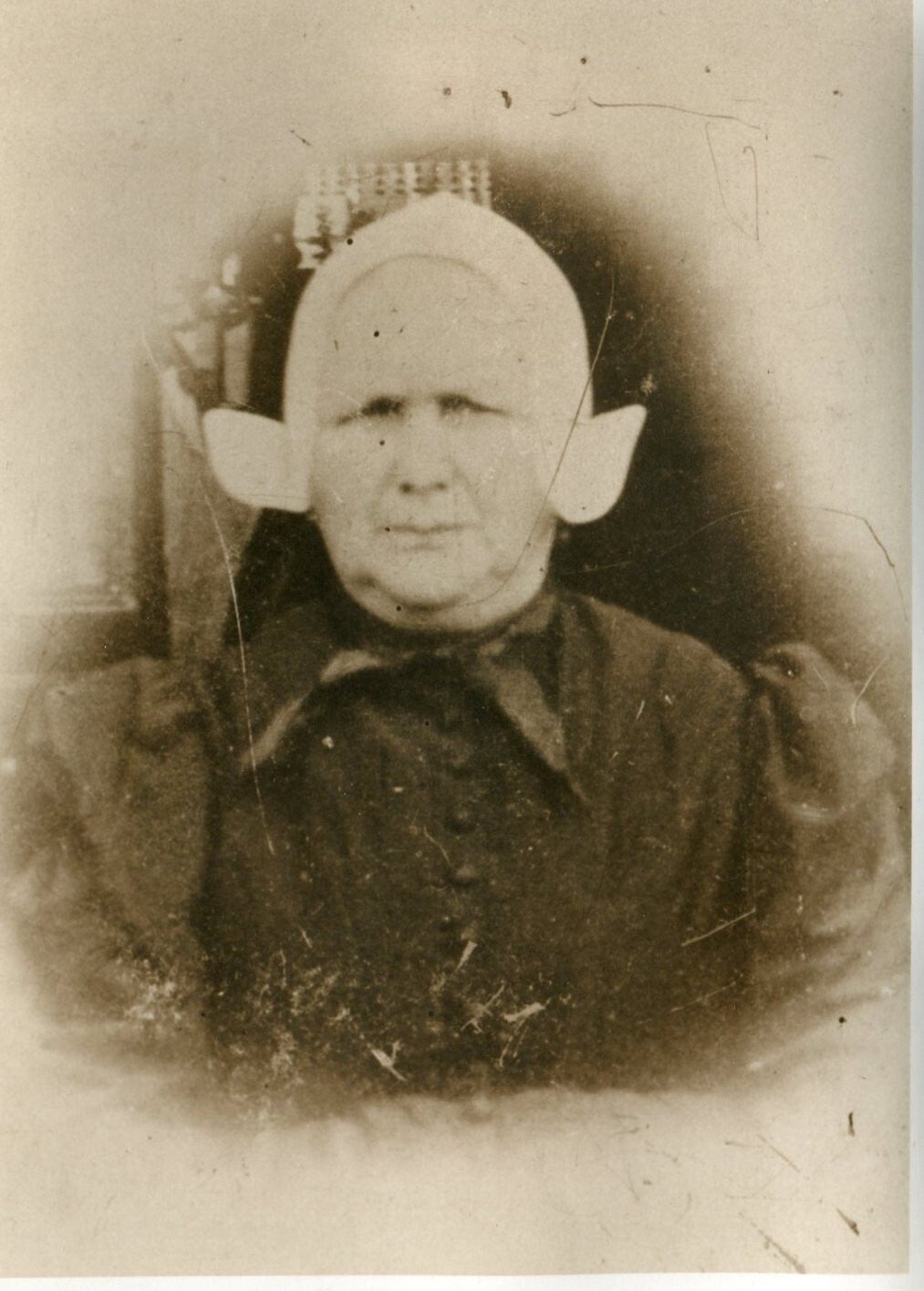 19 Maria Spaans, geboren 30 oktober 1820 te Scheveningen, overleden 8 februari 1908 te Scheveningen, 78 jaar, dochter van Arie Leenderd Spaans [38] en Maria Mos [39]