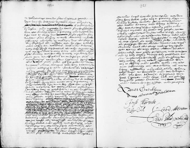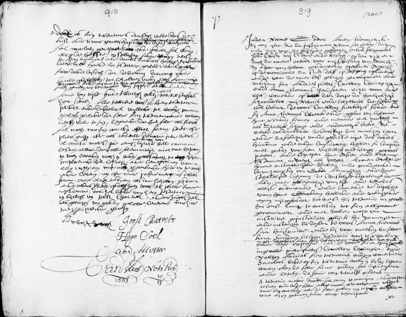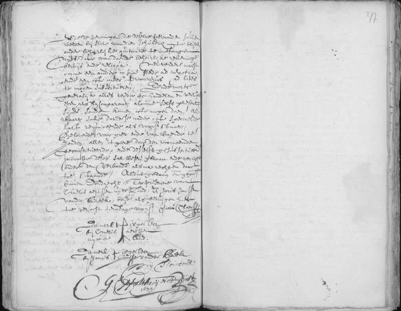 Getekend: Pieter van Hooghwerff schout, Corn Cornelisz Decker schepen, Wouter Verduijn schepen, Willem Huijge Quack schepen, Claes Lowijsz Rademaker, Frederijck Lowijsse Rademaker, M de Mirell secretaris.