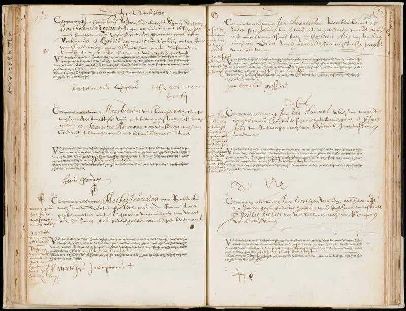 Getuigen: Willem van Walcheren schout, Cornelis Cornelisz Decker schepen, Crijn Leendertsz schepen, D van Egmondt secretaris.