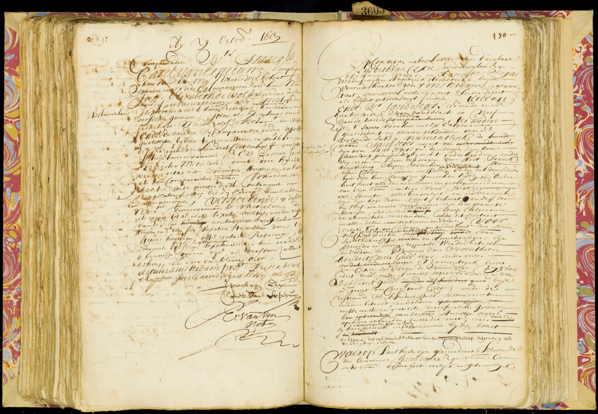 Getekend: Pieter van Hooghwerff schout, Corn Cornelisz Decker schepen, Wouter Verduijn schepen, Willem Huijge Quack schepen, Claes Lowijsz Rademaker, Frederijck Lowijsse Rademaker, M de Mirell secretaris.
