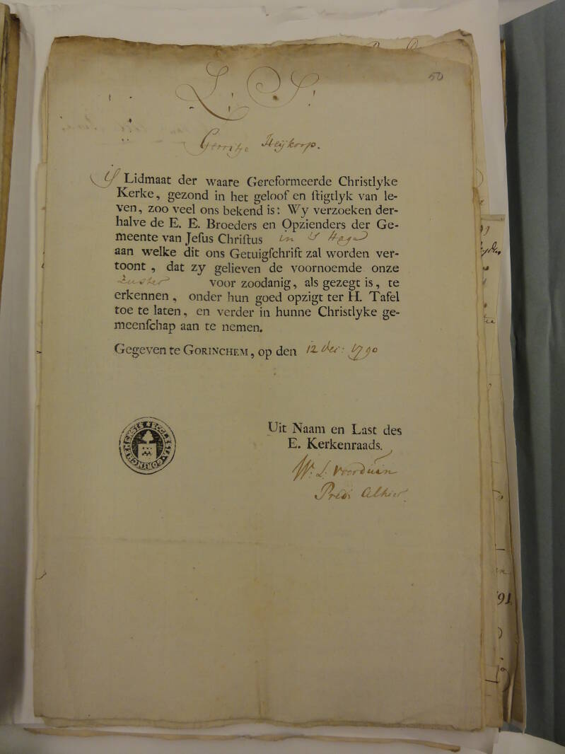 *lidmaten ned.geref Den Haag: Gerritje Heikoop, Wagenstraat, 1782, attestatie van Dordrecht (268-47)