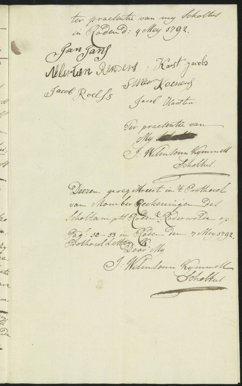 Des &c. Actum den 26 Meij 1794 - Getekend: Bachman