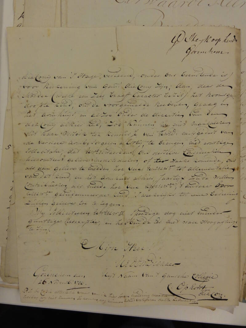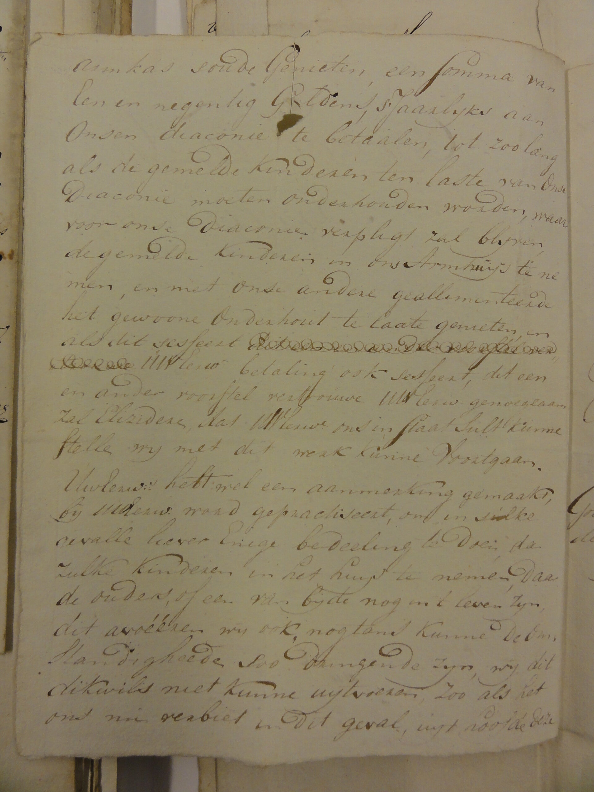 Dat ’t zelve kind, na het overlijden van de voornoemde moeder in een staat van armoede verkeerende, door hem comparant ten zijnen huize met voorkennis van en op speciaal verzoek van zijne tegenwoordige huisvrouwe met name Elisabeth Waardenburg is ingenomen en ten hunnen kosten opgevoed