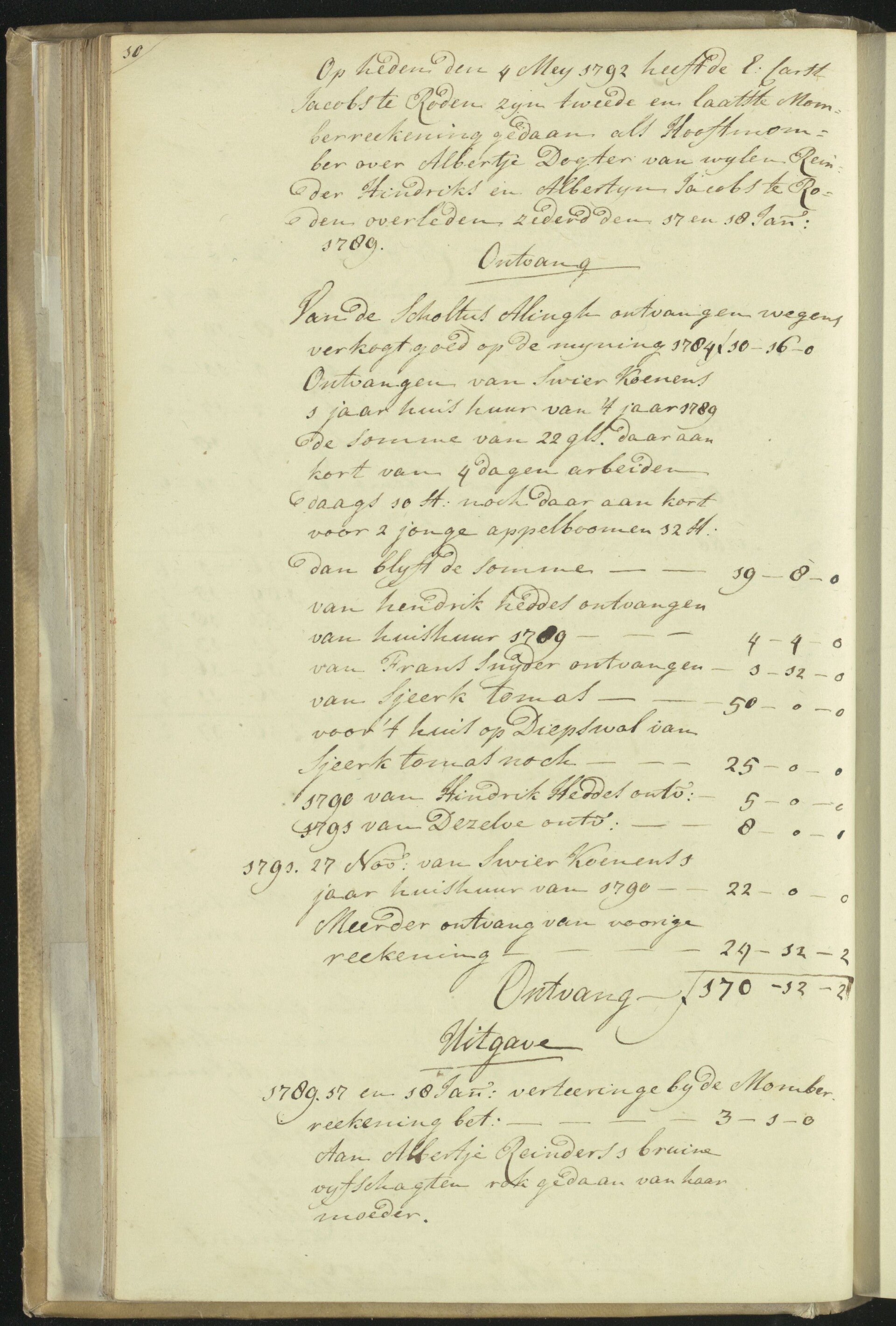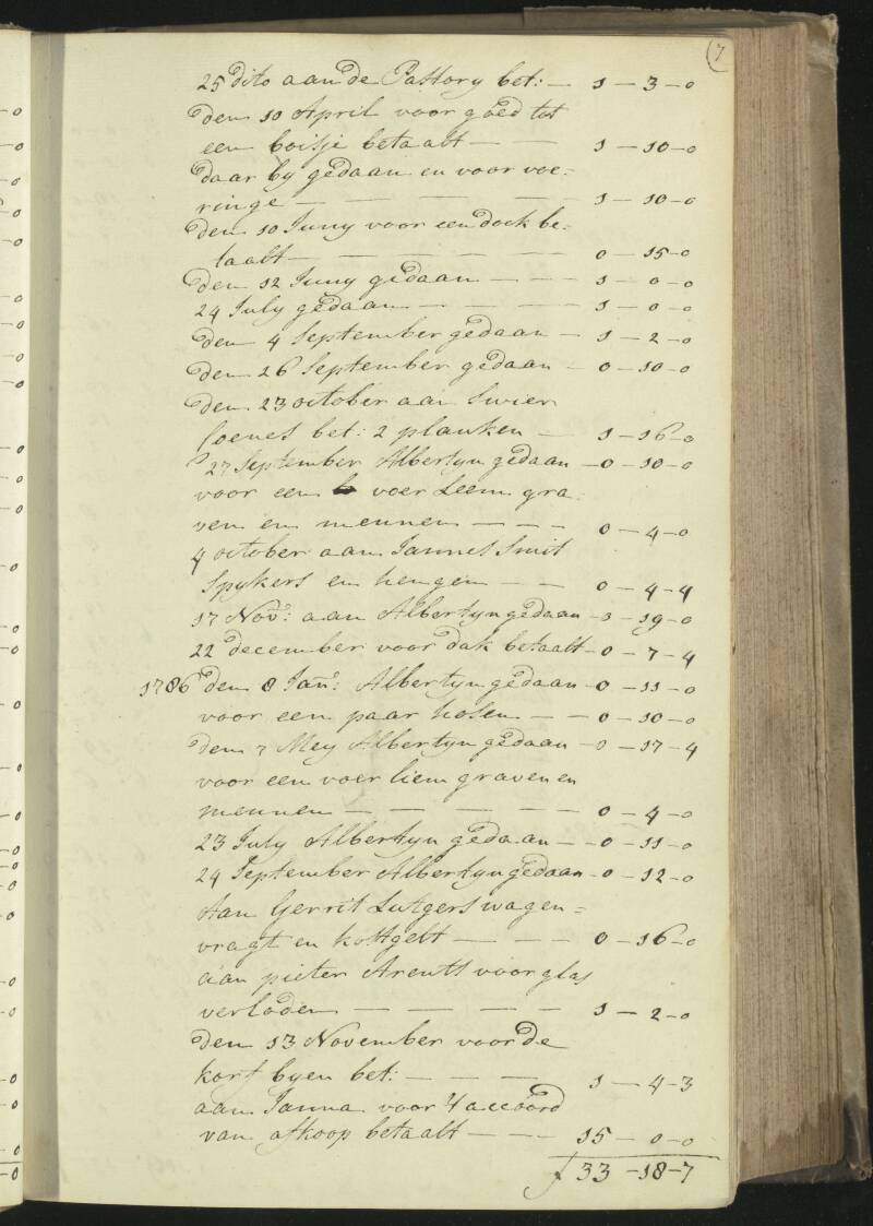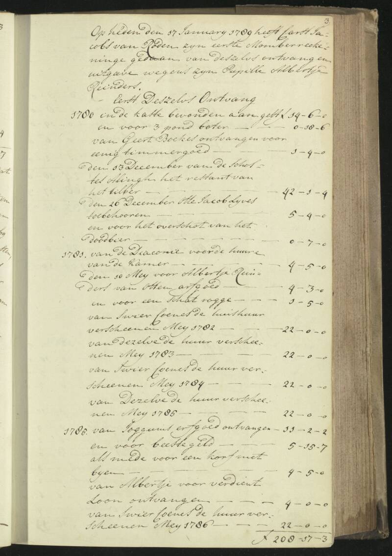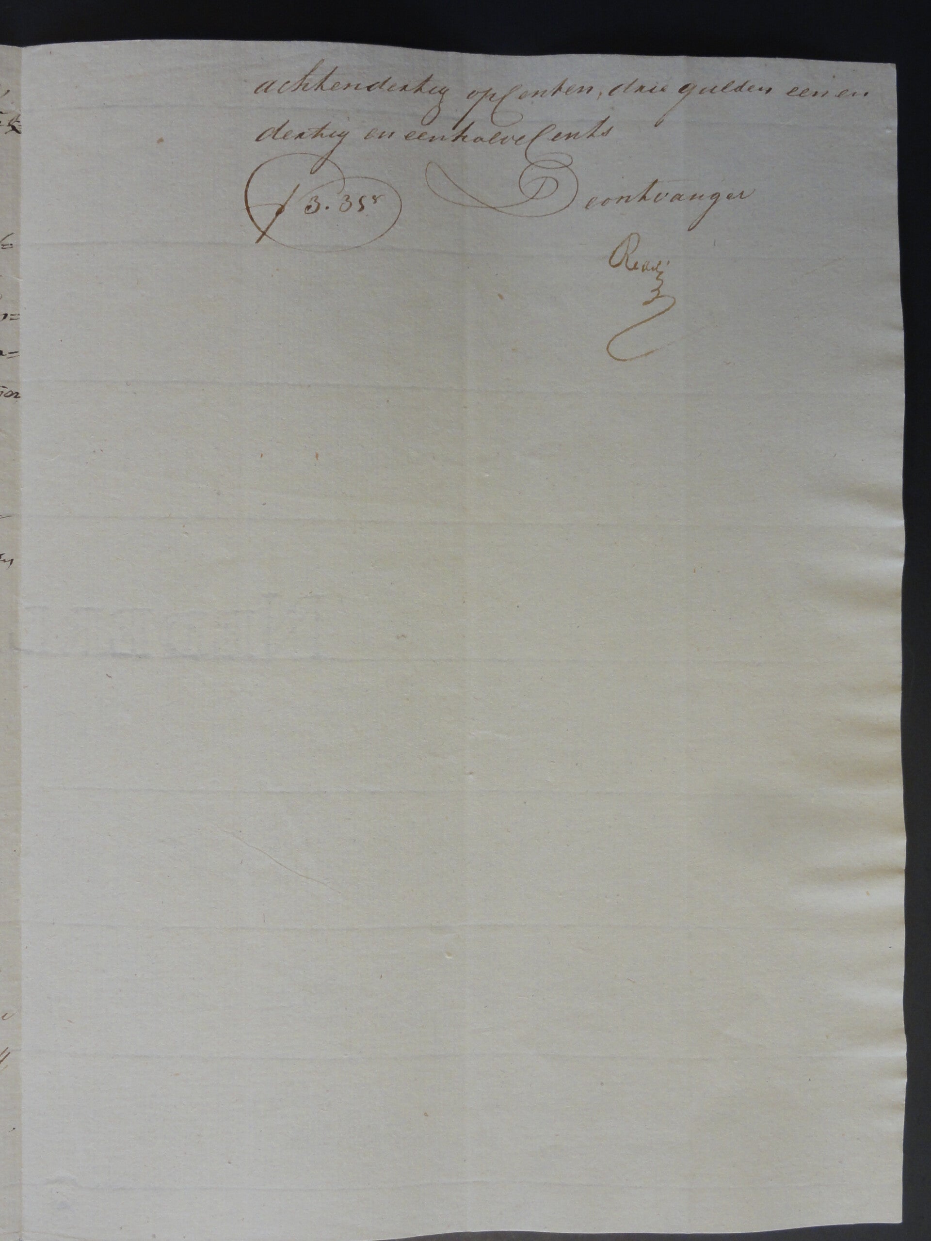 'Rossum Den 30e decemb: 1803 en Jann 1804 over de wed: van Lamb: van Balkum den Ouden 2 uuren geluijd 1 – 16 – voor gebruik van t kleed 1 -10 Betaald 3 – 6 –'