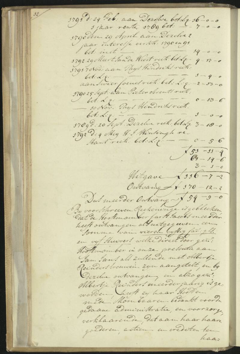 'inkomsten: Jann 1804 over de weduwe van Lam: van Balkum den Ouden 2 uuren geluijd'